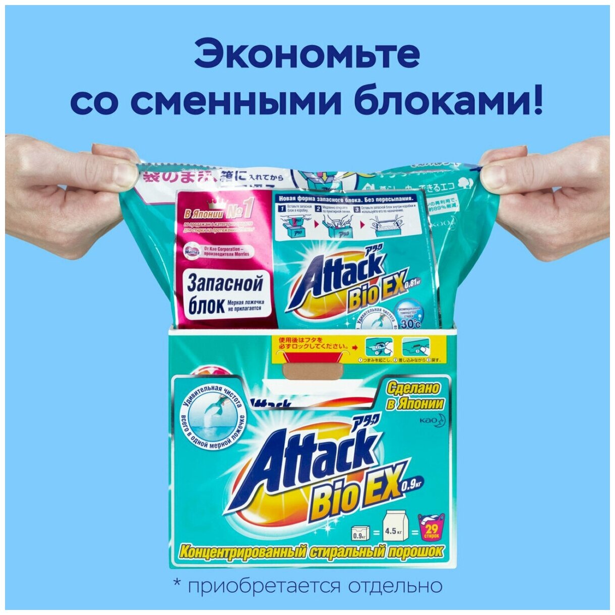 ATTACK Стиральный порошок Attack BioEX, автомат, концентрированный, запасной блок, 810 г