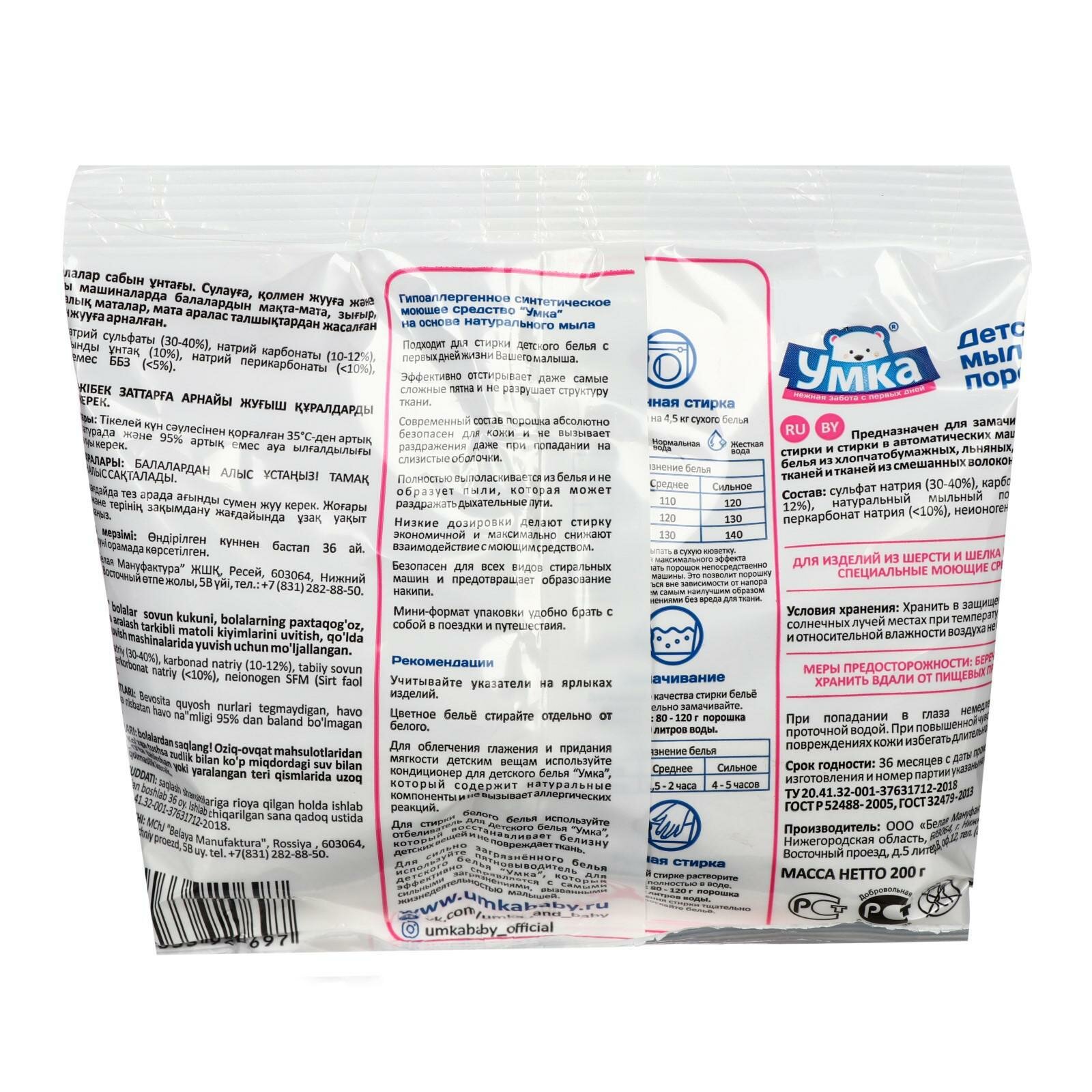Стиральный порошок "Умка", универсальный, для детского белья, 0+, 200 г