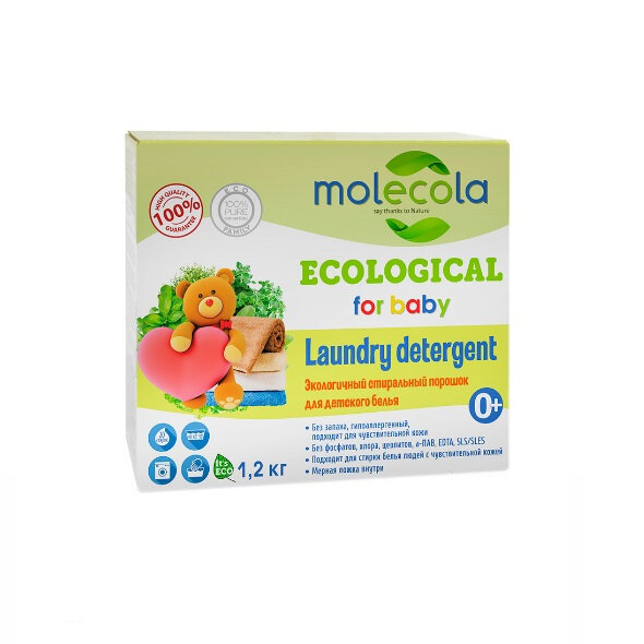 MOLECOLA Экологичный ст-ный порошок с рас-ми энзимами д/стирки белого и цветного детского белья 1,2кг