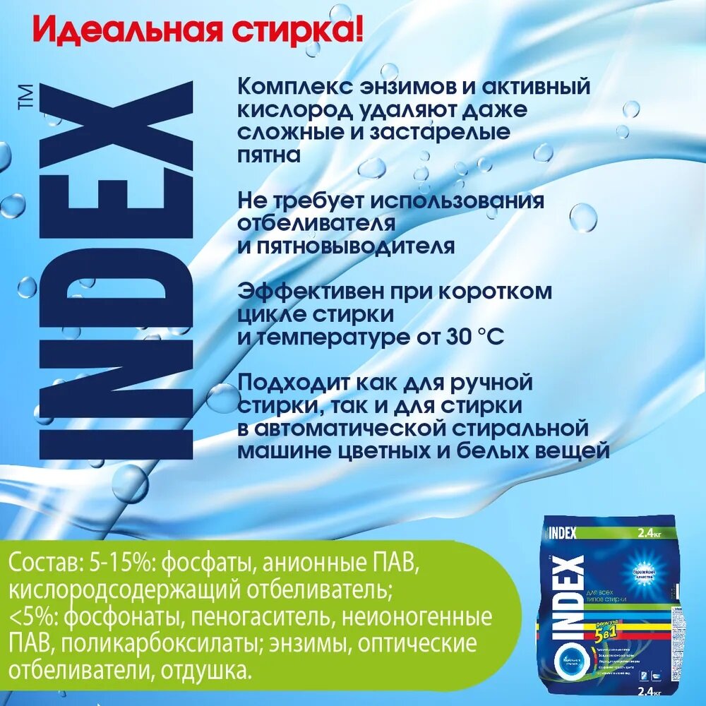 Купить Стиральный порошок INDEX Автомат 5 в 1, 2.4 кг