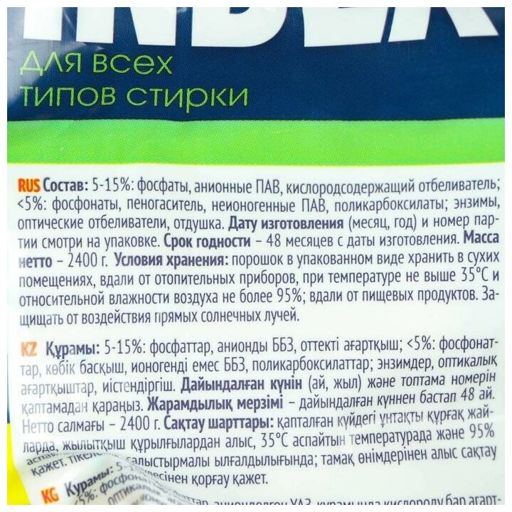 Невская косметика Стиральный порошок для всех типов стирки Index, 2,4 кг