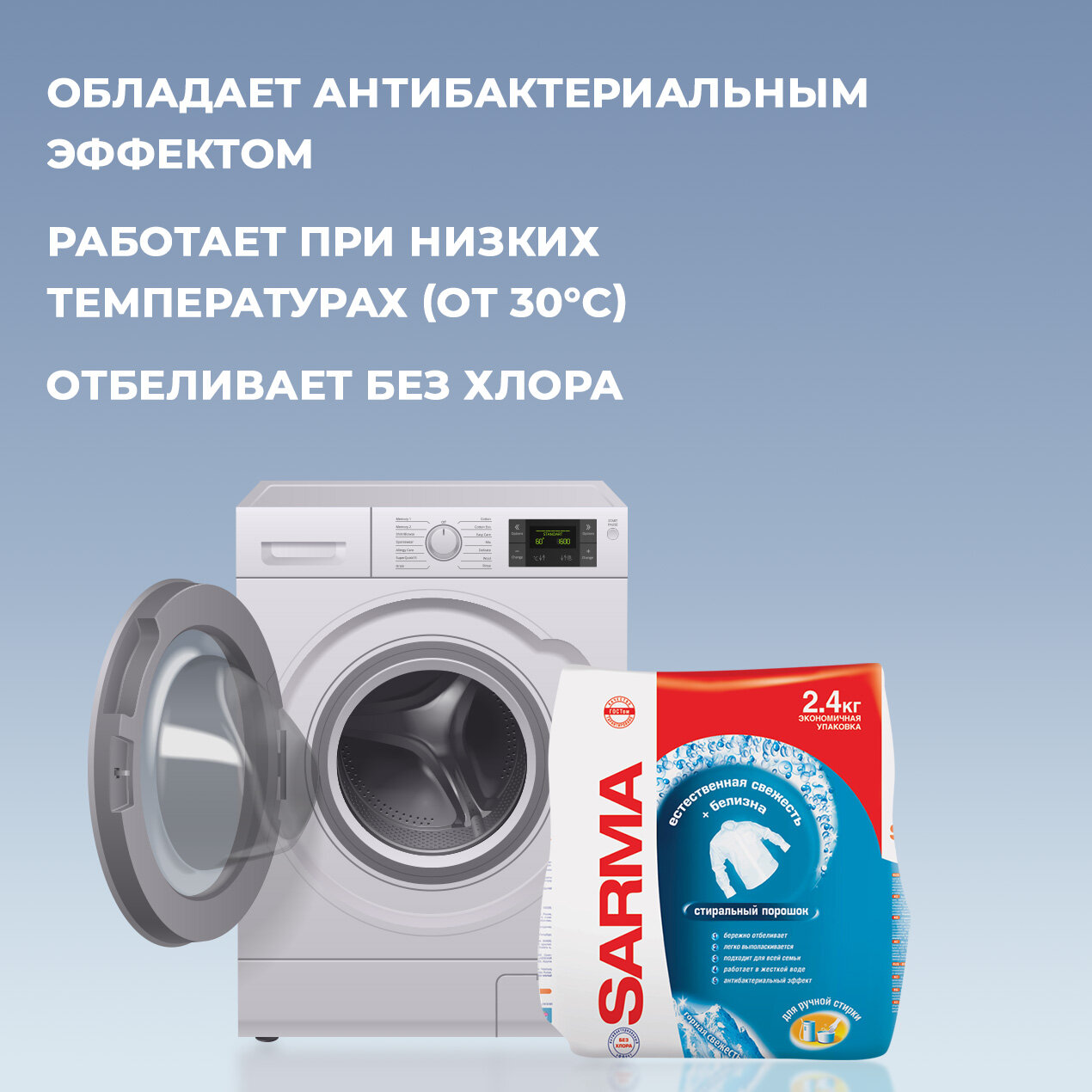 Стиральный порошок для цветного белья Sarma "Горная свежесть", автомат и ручная стирка, 2,4 кг