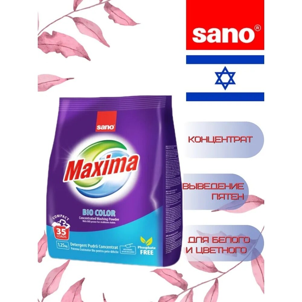SANO Maxima Bio Color концентрированный стиральный порошок без фосфатов для стирки цветного белья 1.25 кг на 35 стирок