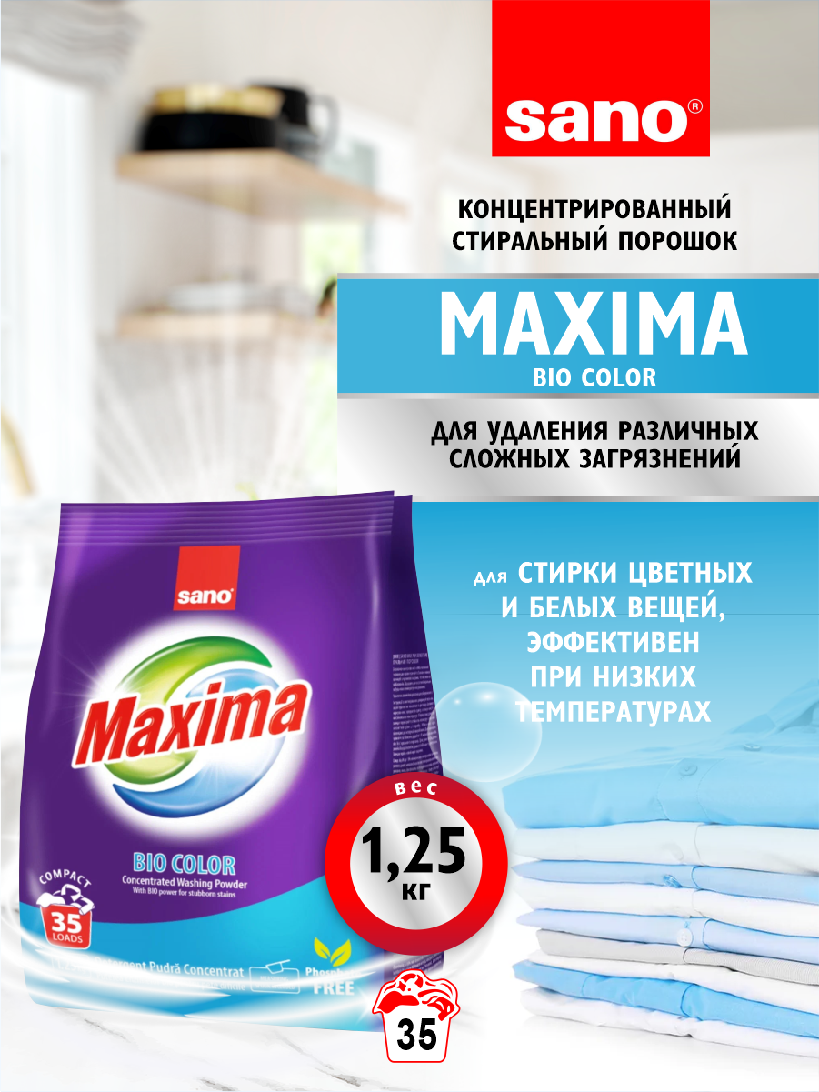 Купить Стиральный порошок Sano Maxima Bio Color для цветного белья, концентрированный, 1.25 кг