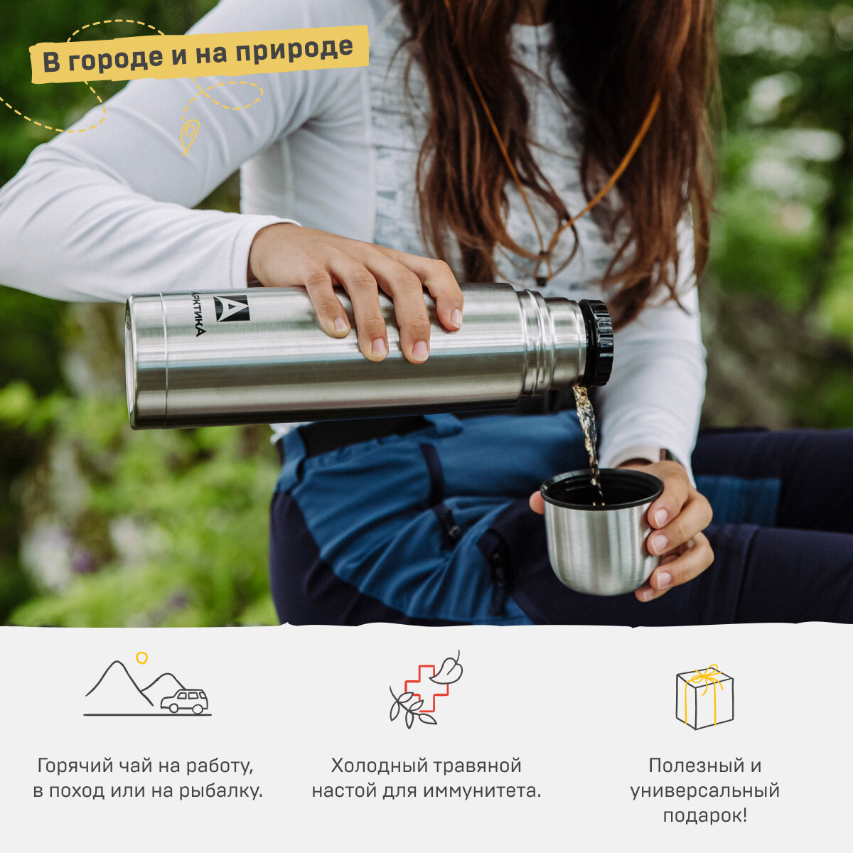 Термос 0,75л для чая Арктика 101-750 для рыбалки, охоты, туриста, для пикника, прогулки