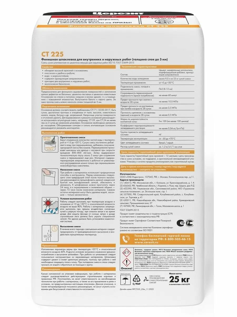 Церезит CT 225, цвет белый, фасовка 25 кг интересное:
