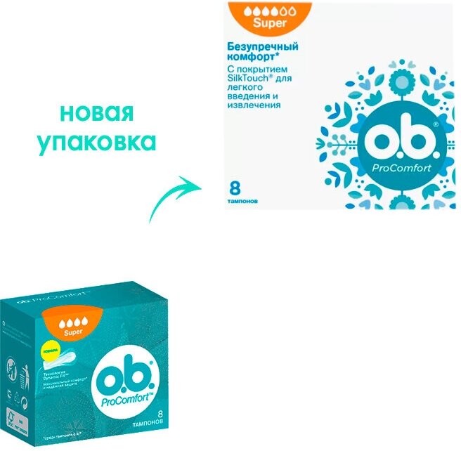 O.b. тампоны ProComfort Super, 4 капли, 8 шт.