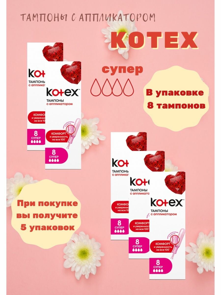 Тампоны Kotex Super, с аппликатором, 8 шт в упаковке
