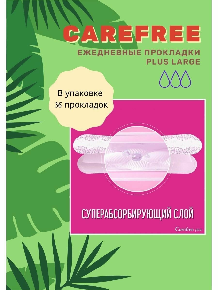 Carefree прокладки ежедневные Plus Large, 3 капли, 36 шт.