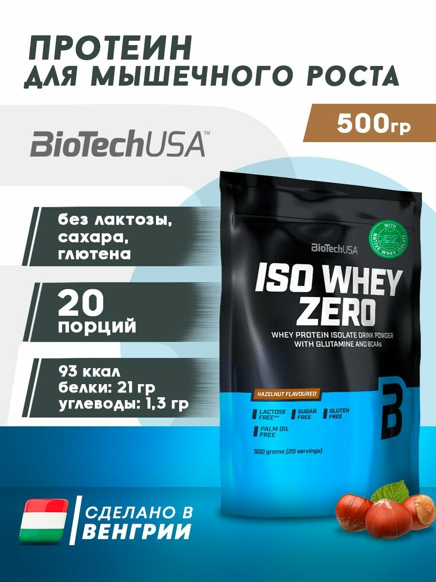 Протеин изолят BioTech USA Iso Whey Zero 500 гр. лесной орех