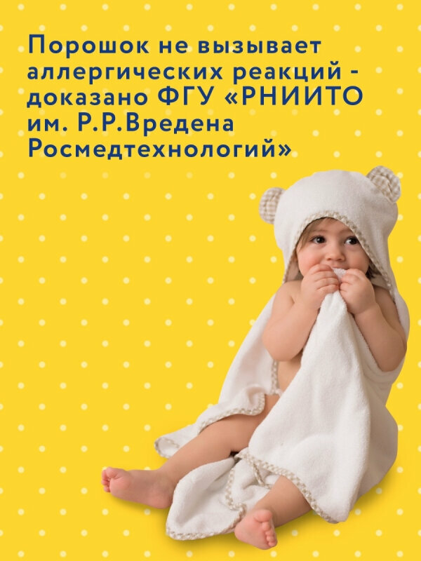 | Отзыв: | Так как я аллергик, пользуюсь только детским порошком, ушастик отлично подходит, не вызывает раздражений и зуда |