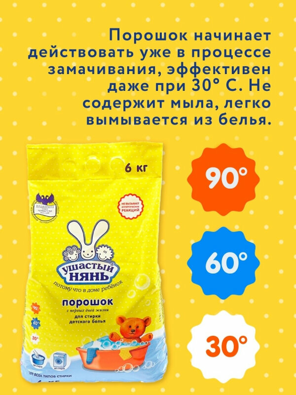 Купить Стиральный порошок Ушастый Нянь для стирки детского белья, 6 кг