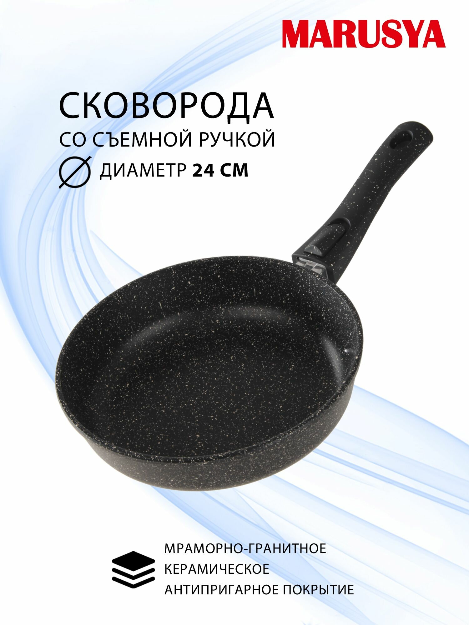 Сковорода Маруся Мрамор 7024 24 см со съемной ручкой (литая антипригарная) черная