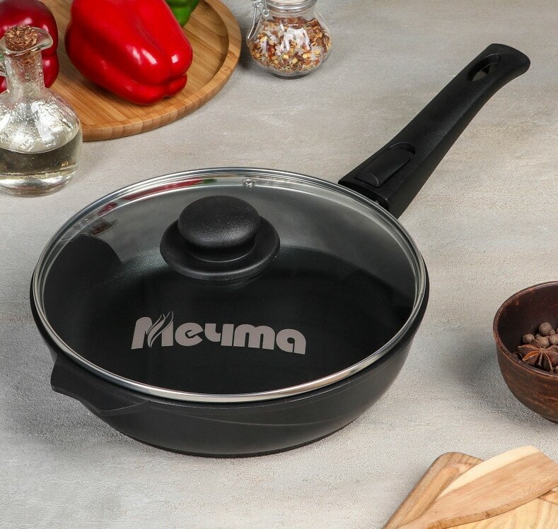Сковорода Престиж, 24 6 см, съёмная ручка, стеклянная крышка Мечта (литая посуда) .