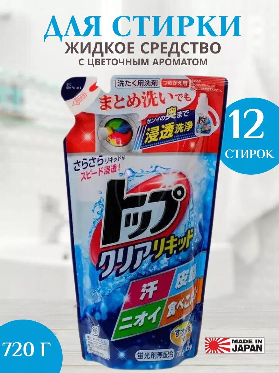 Lion Top Clear Liquid Жидкое средство для стирки белья, сила ферментов, мягкая упаковка, 720 гр
