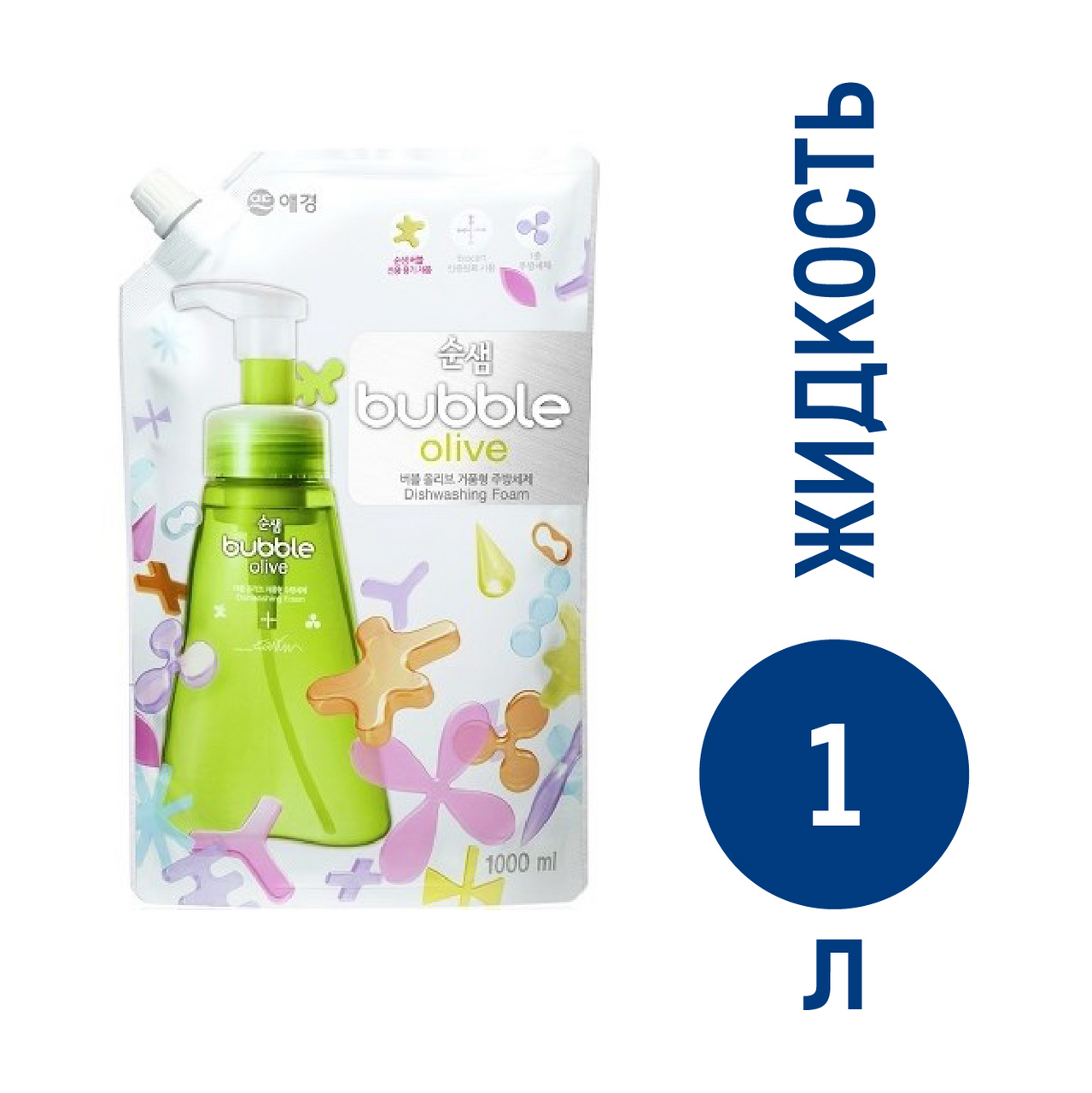 Aekyung Soonsaem Bubble Olive Пенка для мытья посуды Оливки 1000 мл в мягкой упаковке