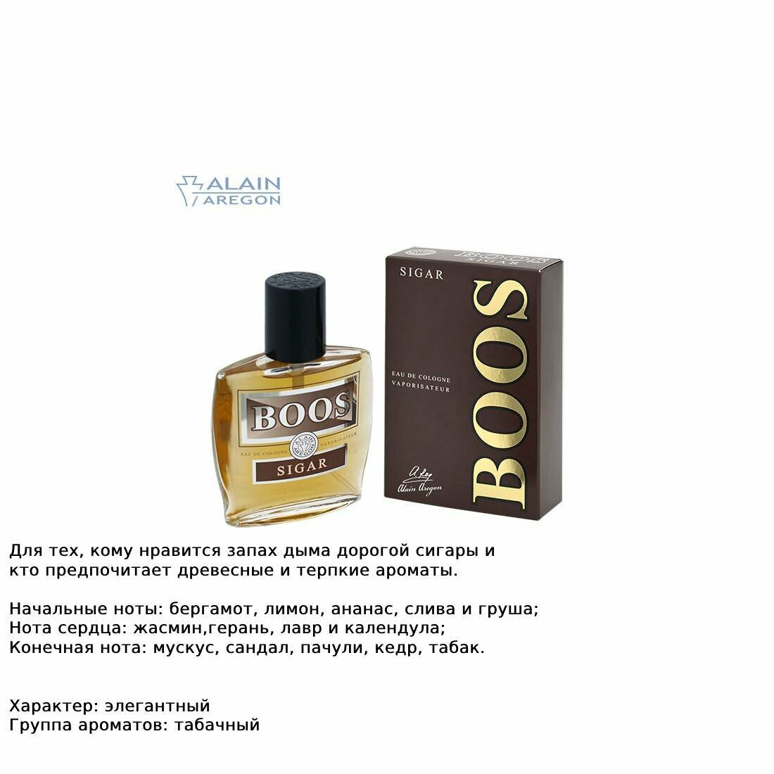 Alain Aregon / Boos Sigar, 60мл / Боос Сигар / Мужской одеколон