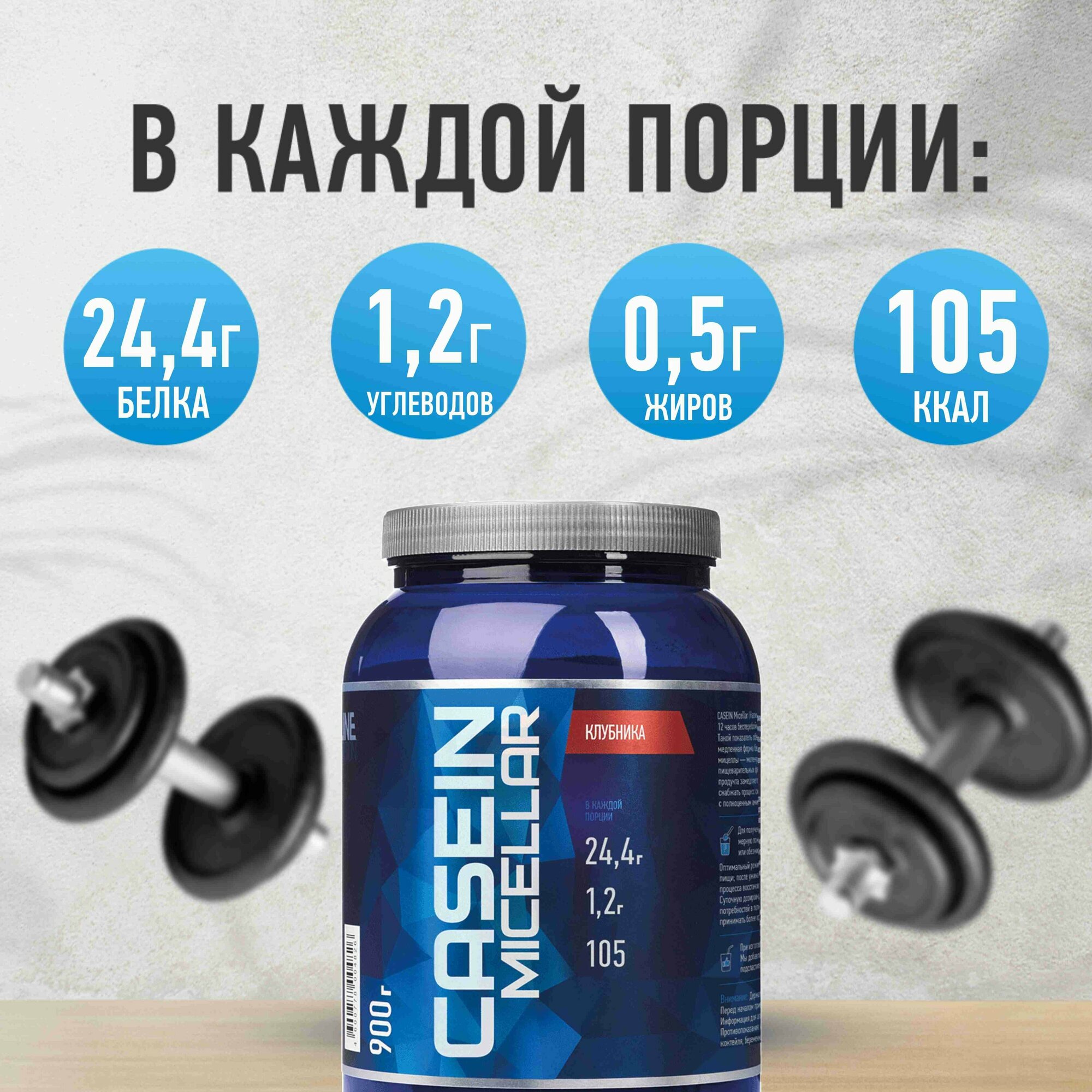 Протеин казеиновый RLINE Nutrition Casein Micellar, Клубника, 900 гр