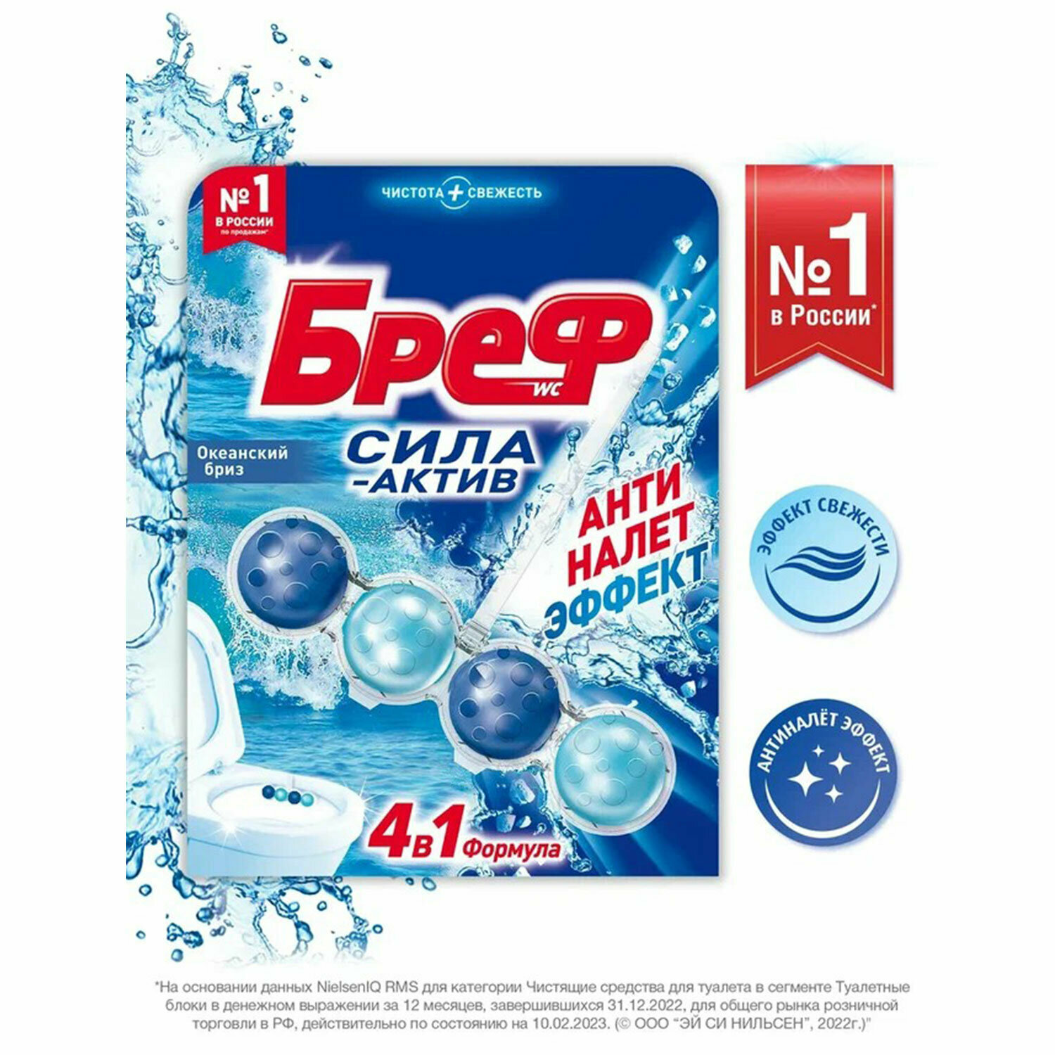 Бреф Блок для унитаза сила-актив океанский бриз 2*50 г.