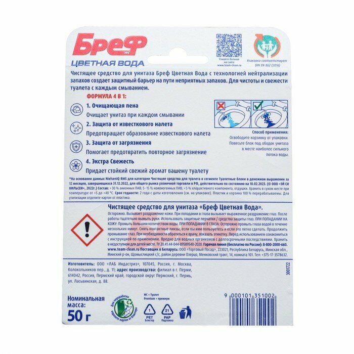 Туалетный блок подвесной «Бреф» Color Aktiv с хлор-компонентом, 50 г
