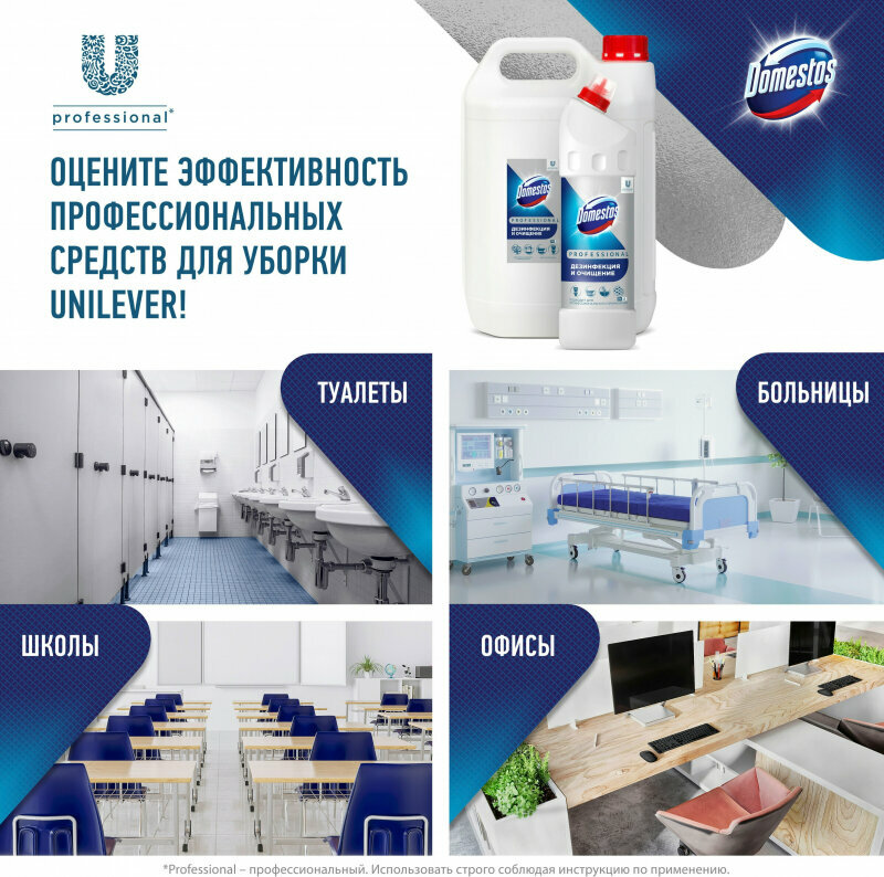 Domestos Professional 1л, профессиональное дезинфицирующее чистящее средство, доместос для клининга уборки дезинфекции.