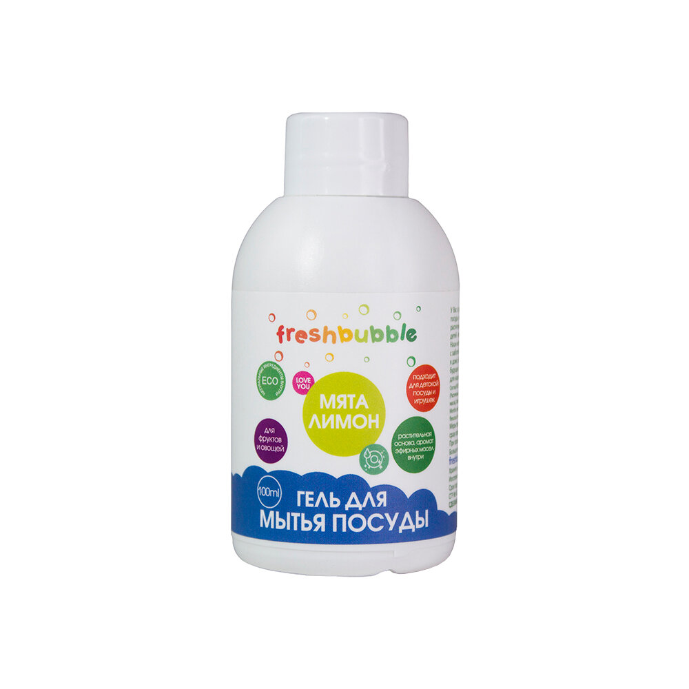 Купить Freshbubble Гель для мытья посуды Мята и Лимон MINI, для игрушек, фруктов и овощей, 100 мл