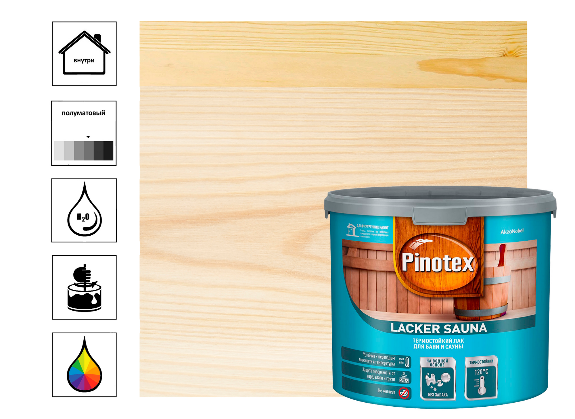 Купить лак для саун PINOTEX Lacker Sauna 2,7л полуматовый, арт.5254108
