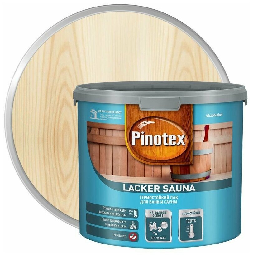 PINOTEX LACKER SAUNA 20 лак на водной основе, термостойкий, д/вн.работ, полуматовый (2,7л)