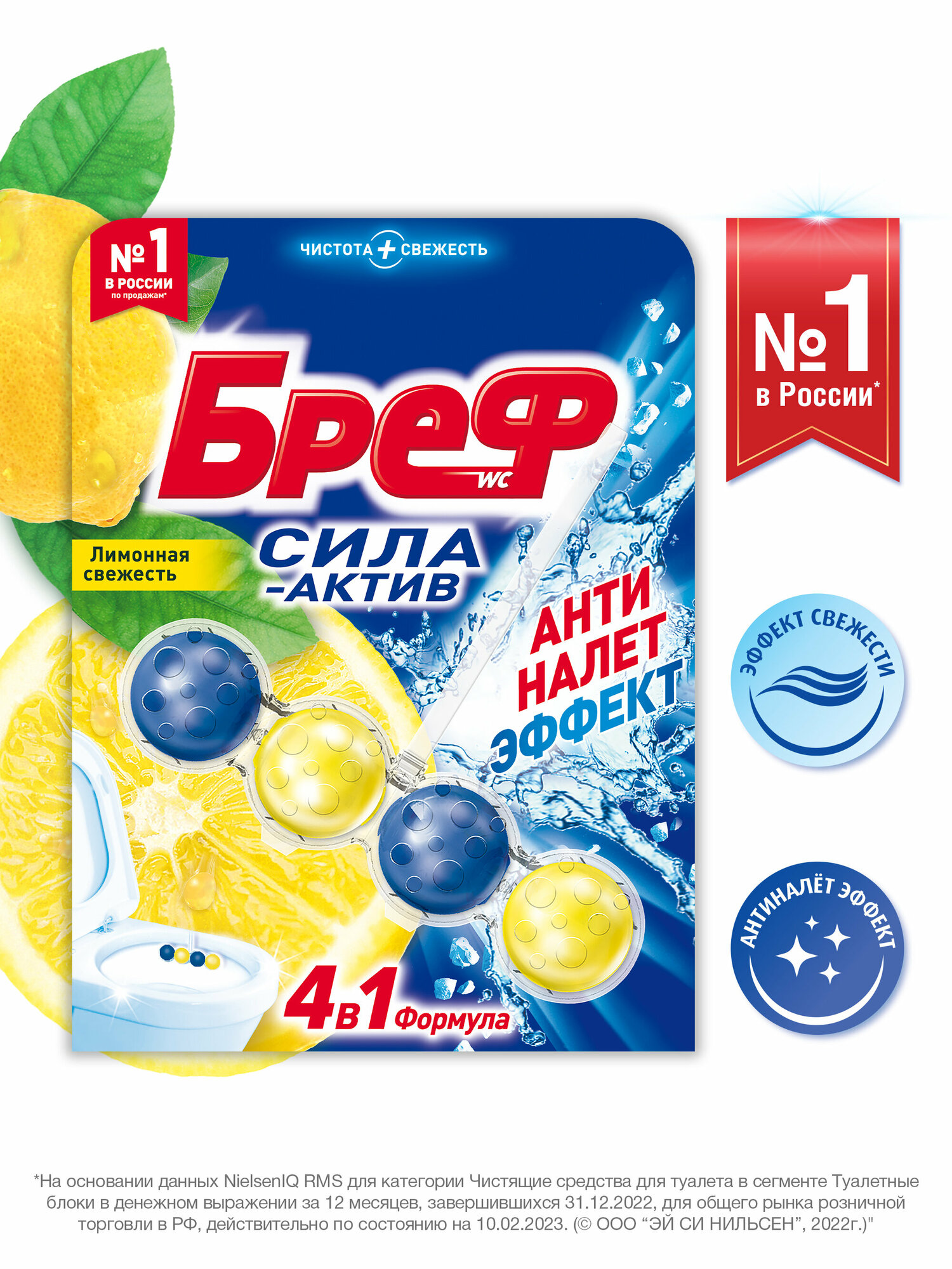 Гигиенический блок для унитаза Bref "Сила-Актив. Лимонная свежесть", 2x50г, блистер (9000100656832)