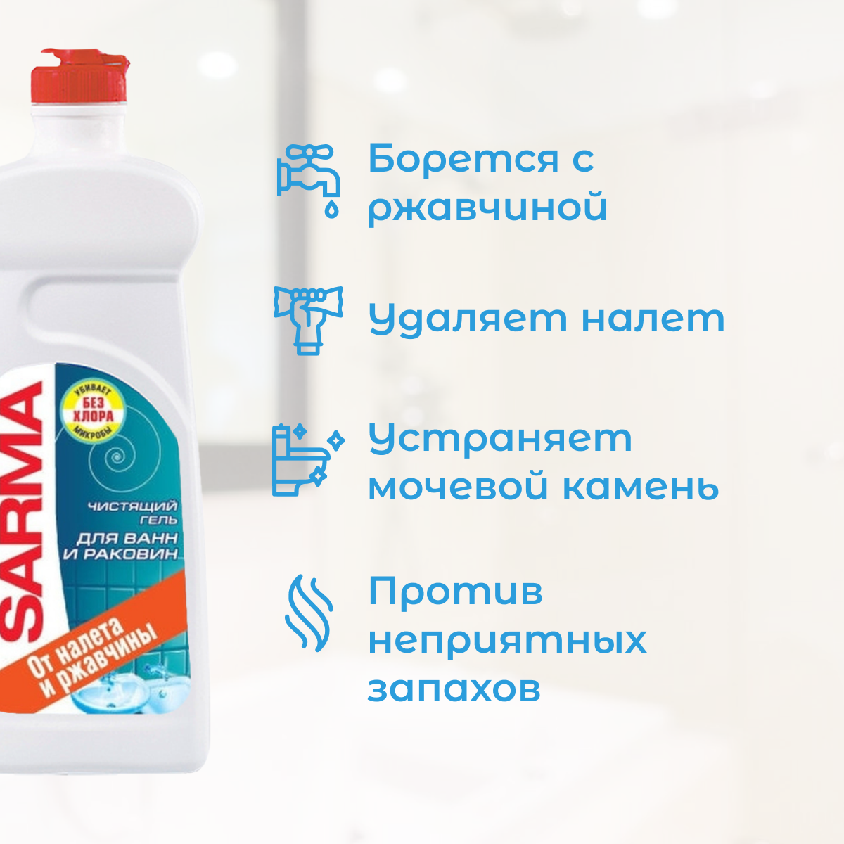 Гель для ванн и раковин Sarma «Антиржавчина", универсальное, 500 мл 1575772