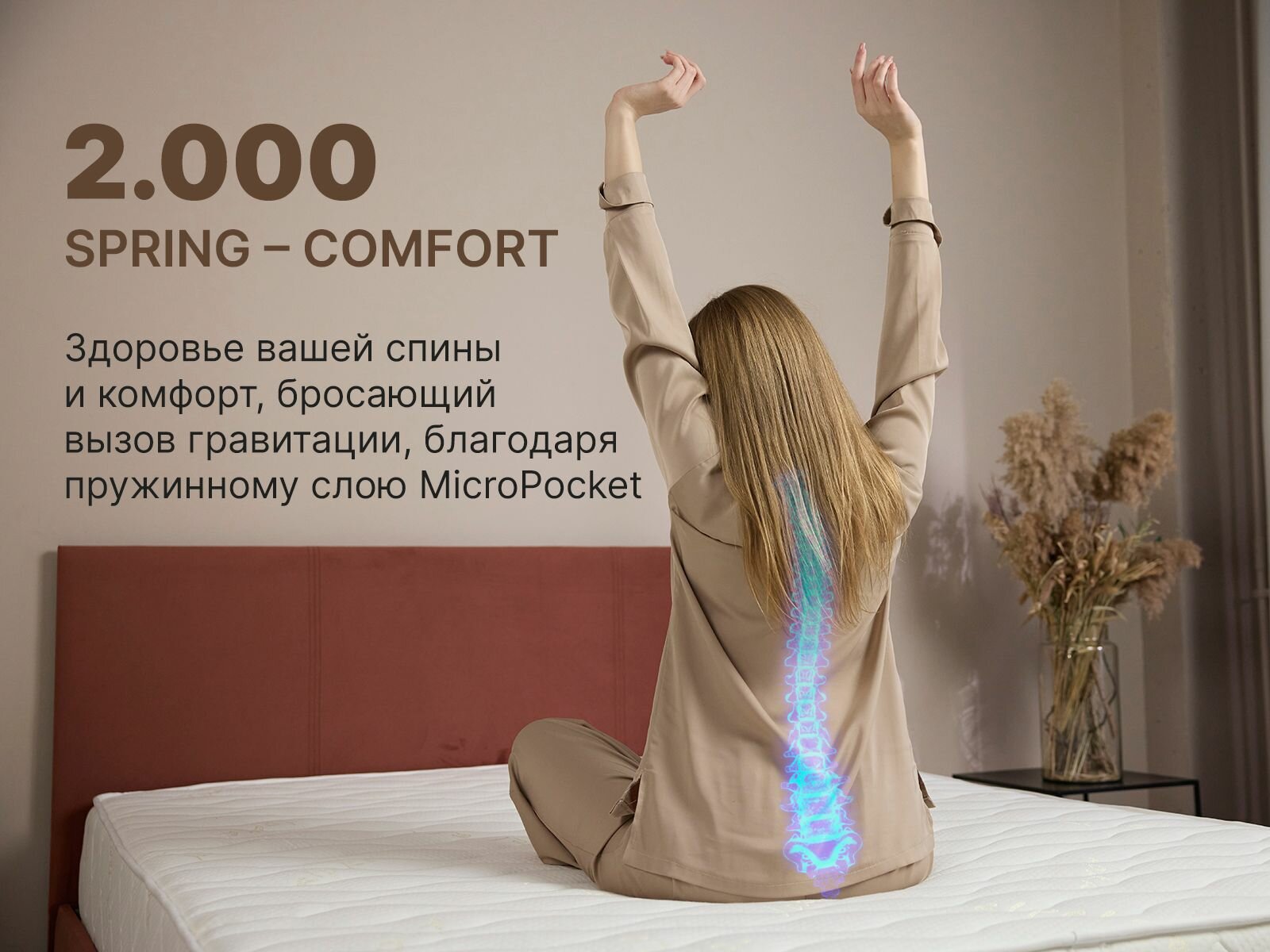 Очень мягкий внешний материал, хороший пружинный блок (500 пружин на 1 кв.м.) - спится очень комфортно. Относительно недорогой. |