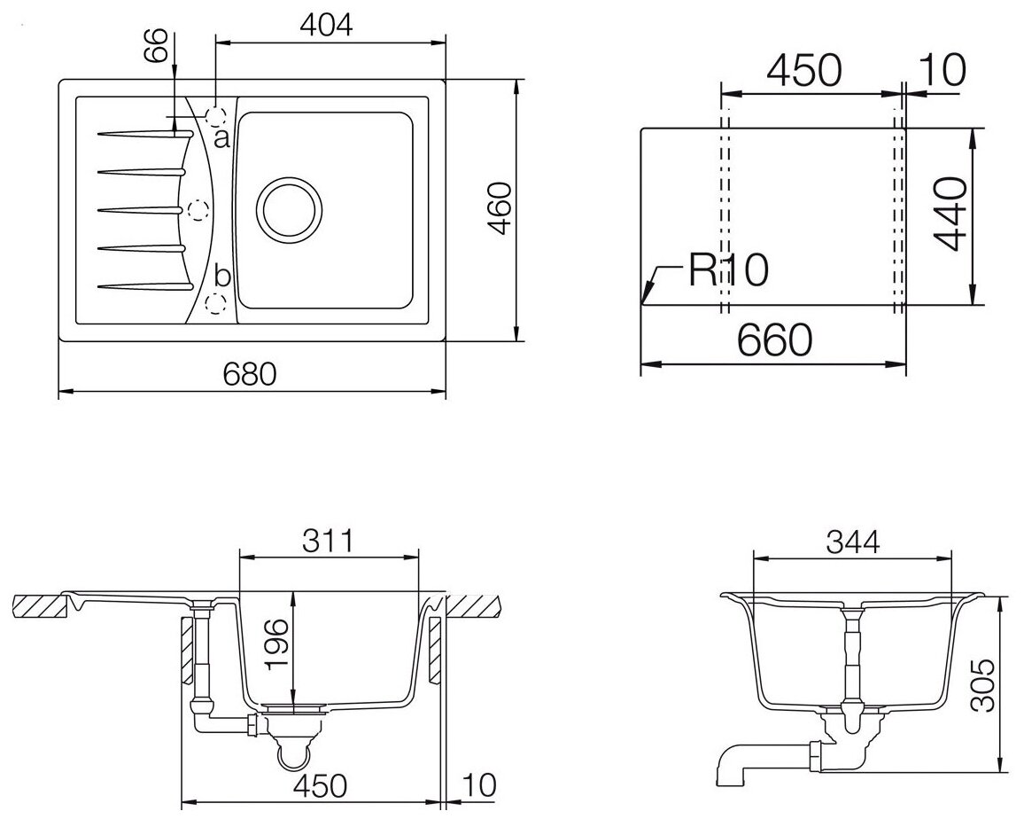 Врезная гранитная кухонная мойка 45 см, Genius 45D small Schock Шок