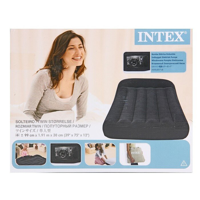 Надувной матрас Intex c подголовником Pillow Rest Classic Bed, 99x191x23cм, встроенный насос, 66779