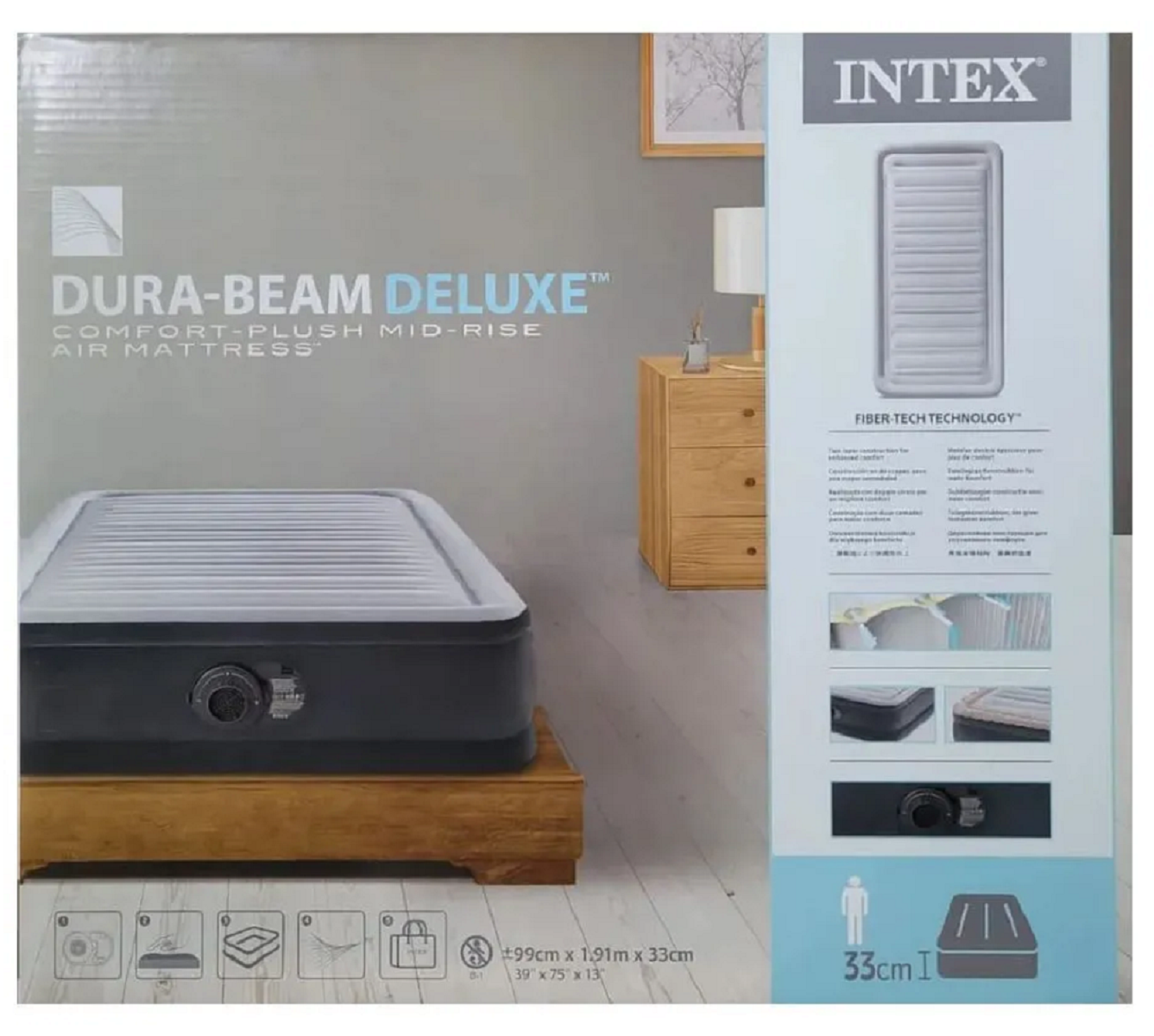 Кровать надувная INTEX COMFORT-PLUSH MID RISE, 99х191х33см, флок (встроенный насос 220В)