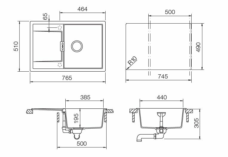 Врезная кухонная мойка LEX Maury 510