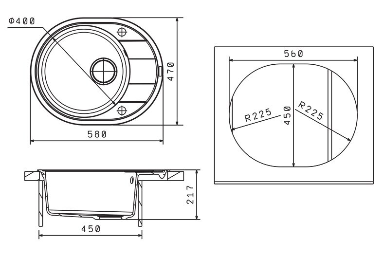Мойка кухонная округлая Флорентина Родос 580 Антрацит (20.240.B0580.302)