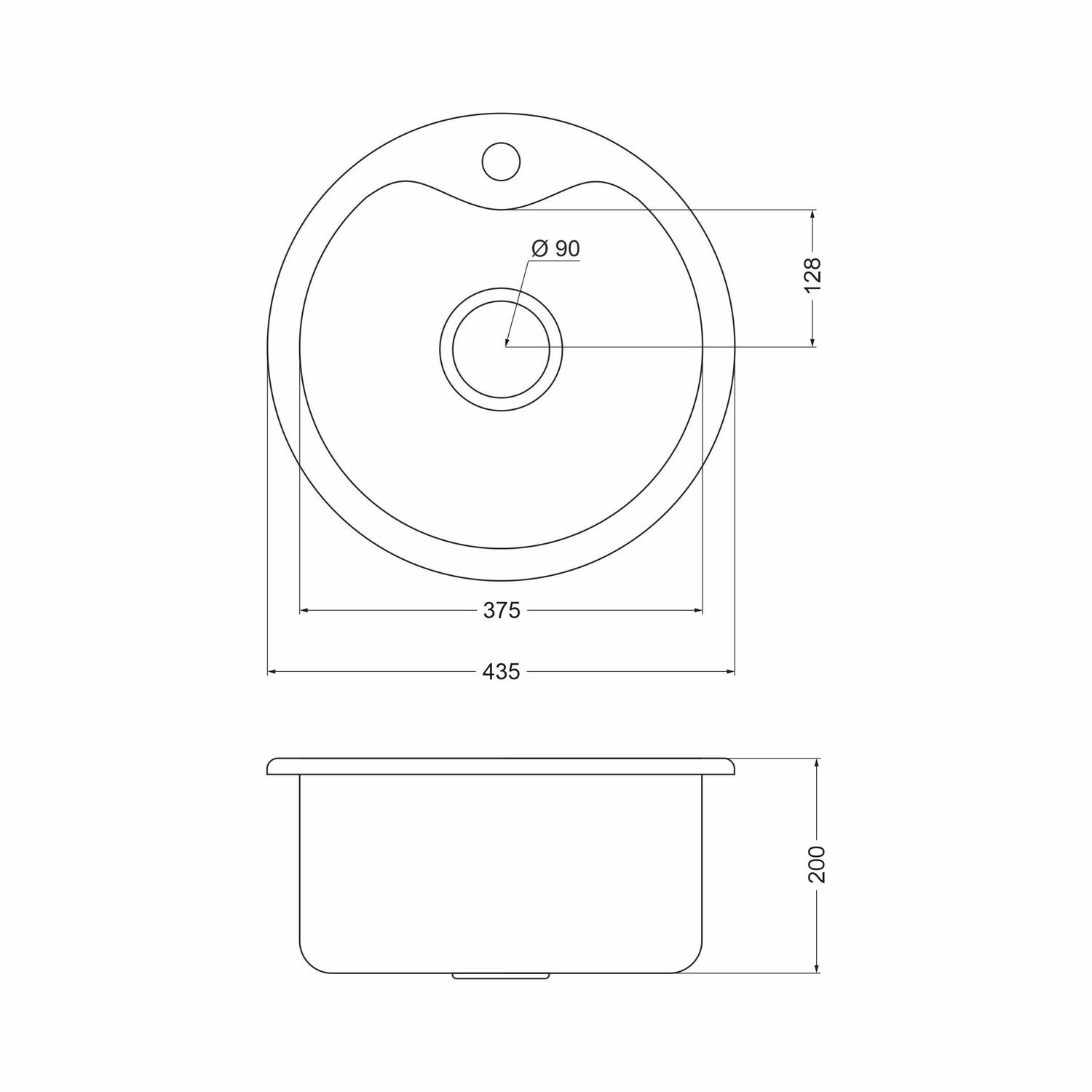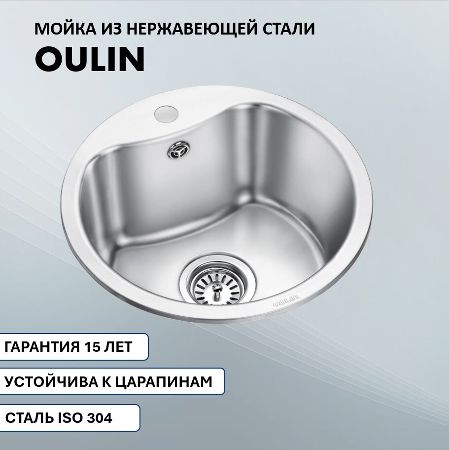 Мойка для кухни врезная нержавеющая (1 мм) OULIN OL-357, круглая, 435х435х200 мм