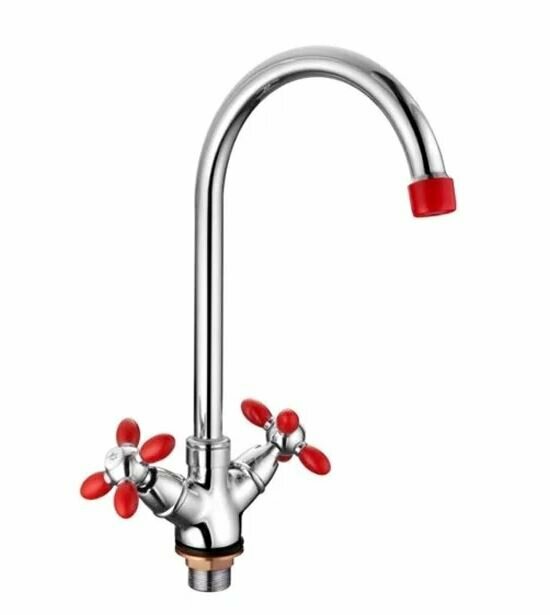 Смеситель кухня на гайке (крест красный). Силумин, Accoona A4582N