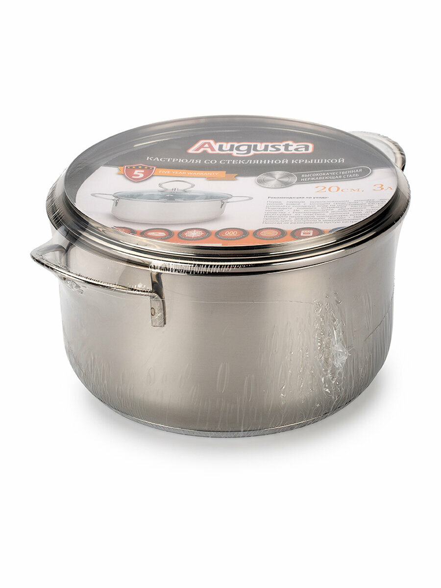 Кастрюля 2,0л AUGUSTA с крышкой (нержавейка), стекло
