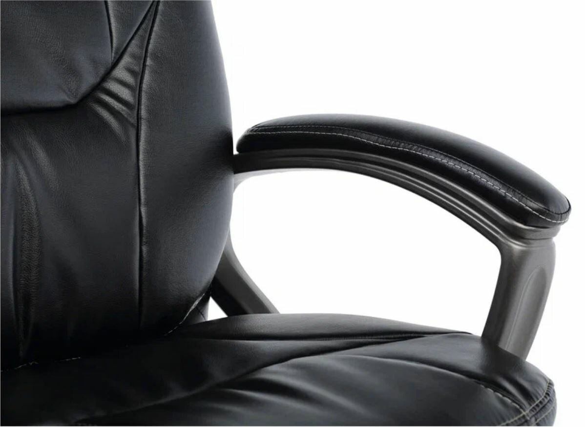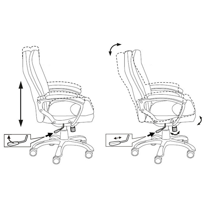 Практичный материал из искусственной кожи; Мягкие подлокотники; Красивые вставки в крестовине; Широкий диапазон регулировки силы качения (под самый разный вес тела); Надежные и долговечные механизмы. |