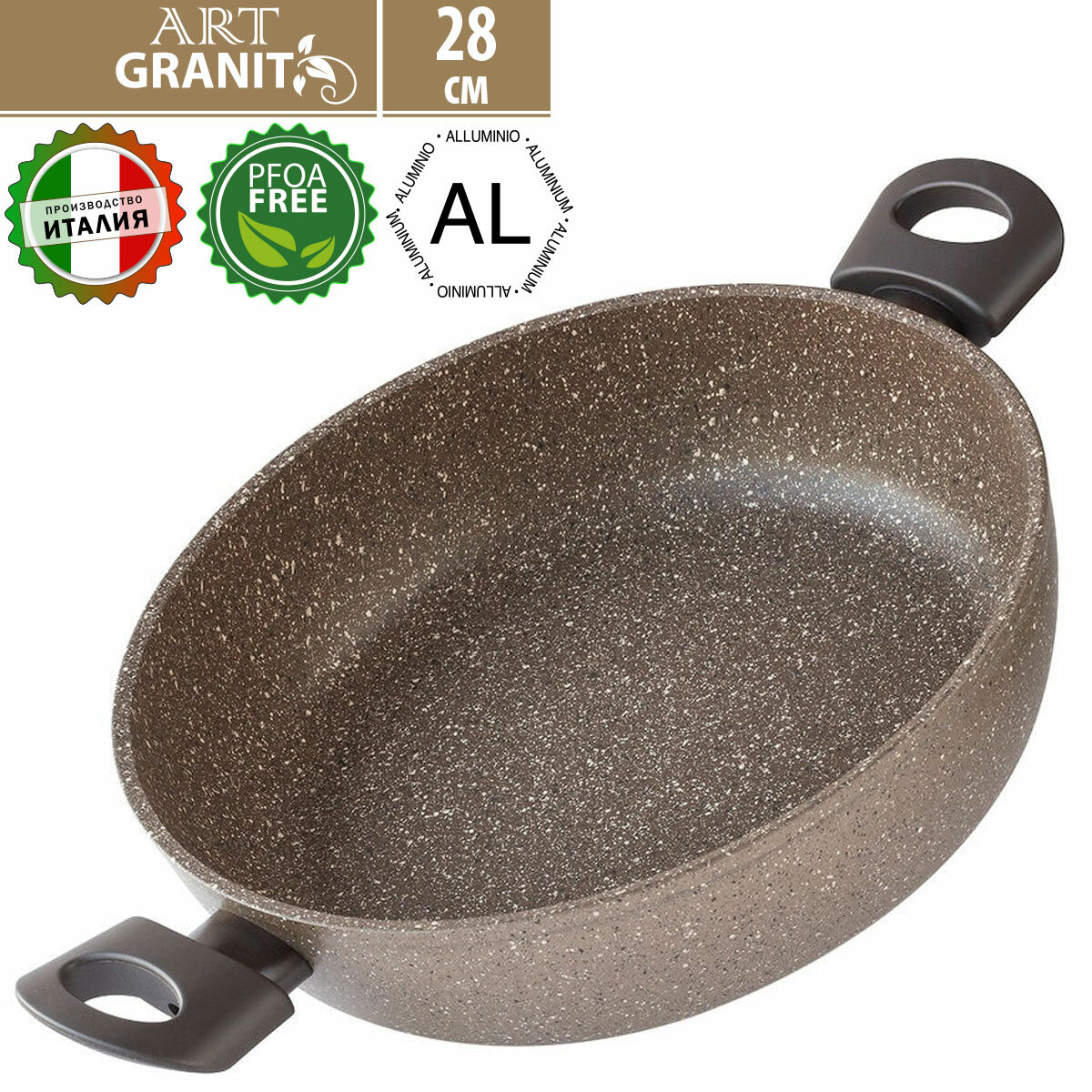 арт. AT-2128 Сотейник без кр. TimA ART GRANIT 28см с 2-мя ручками