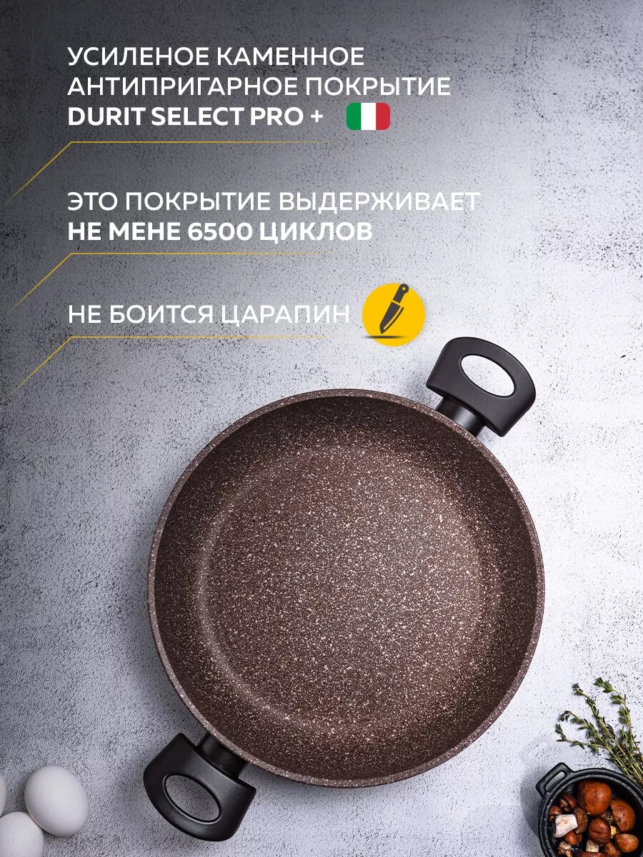 Сотейник без крышки с 2-мя ручками TVS ART GRANIT 28 см