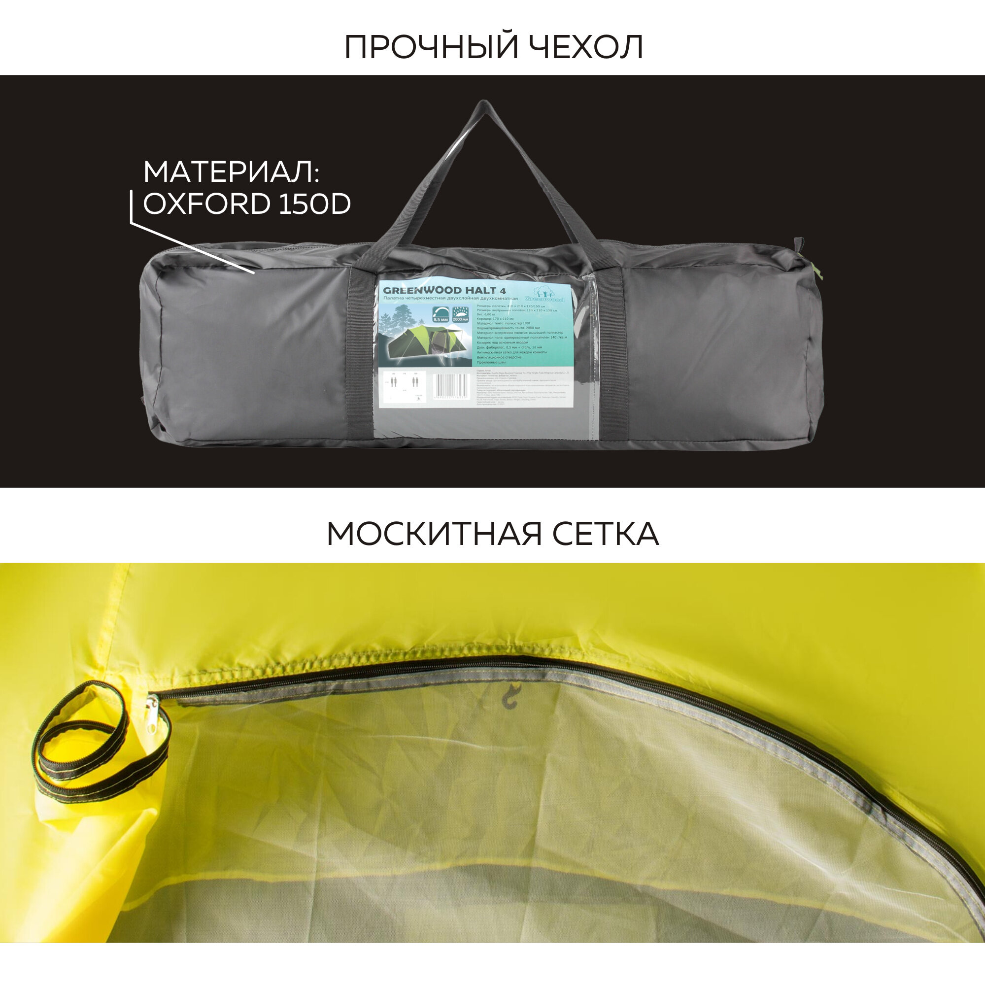 Палатка 4-х местная Greenwood Halt 4 зеленый/лайм (214) интересное: