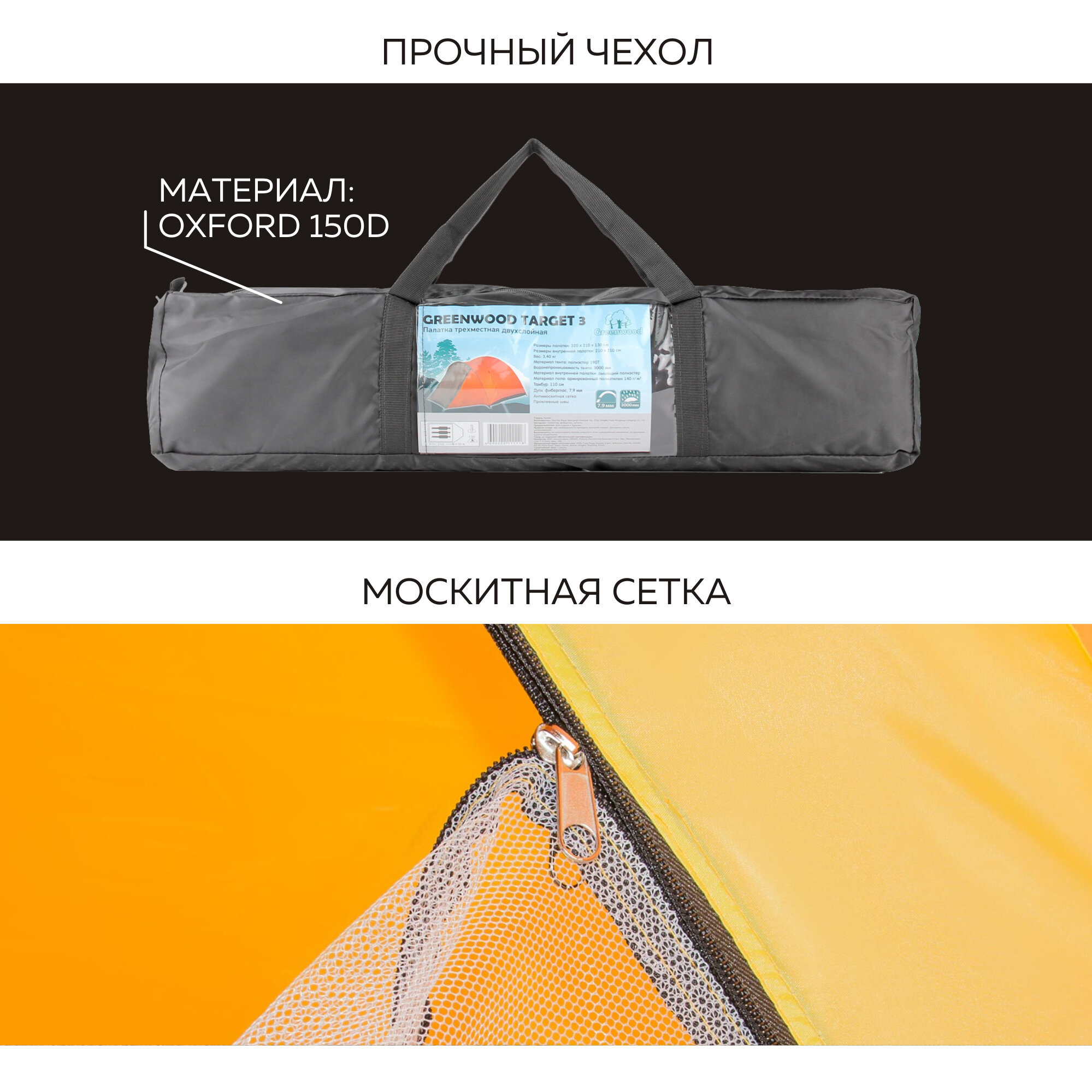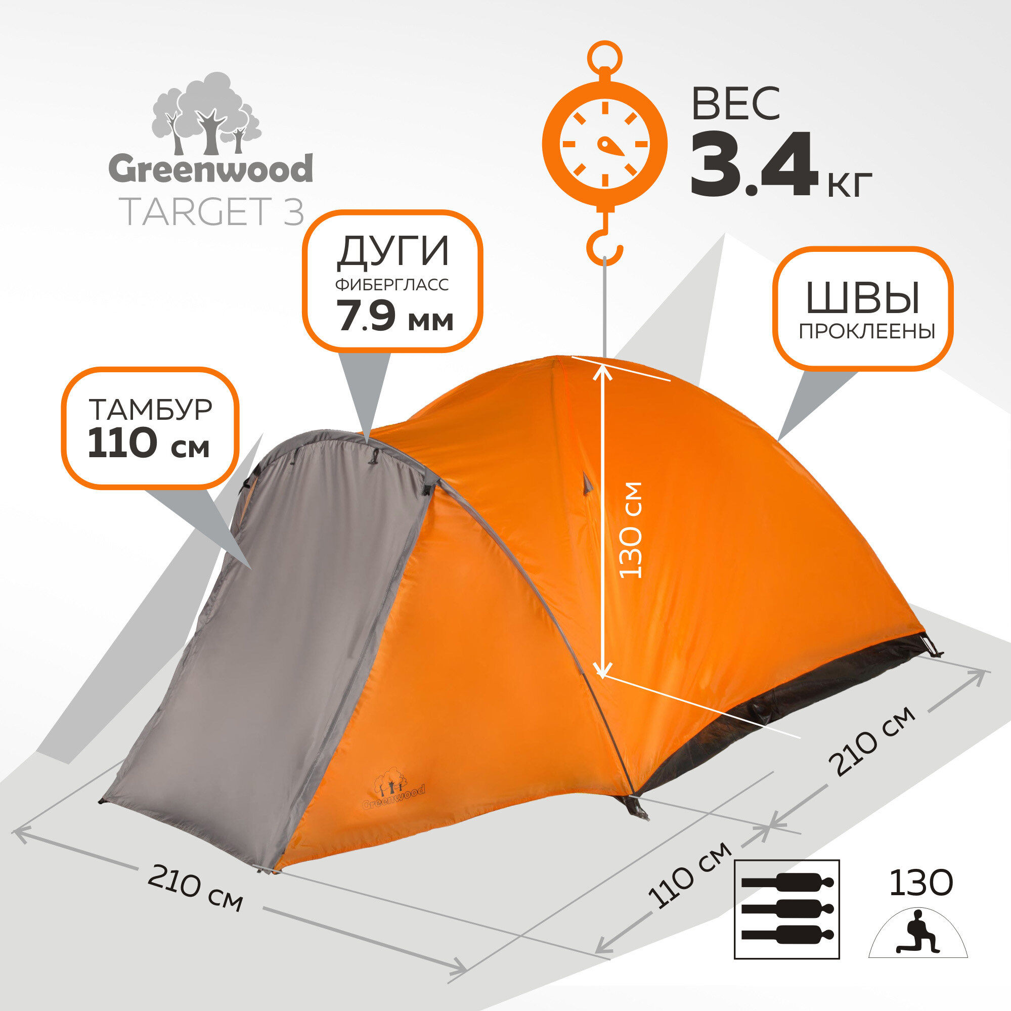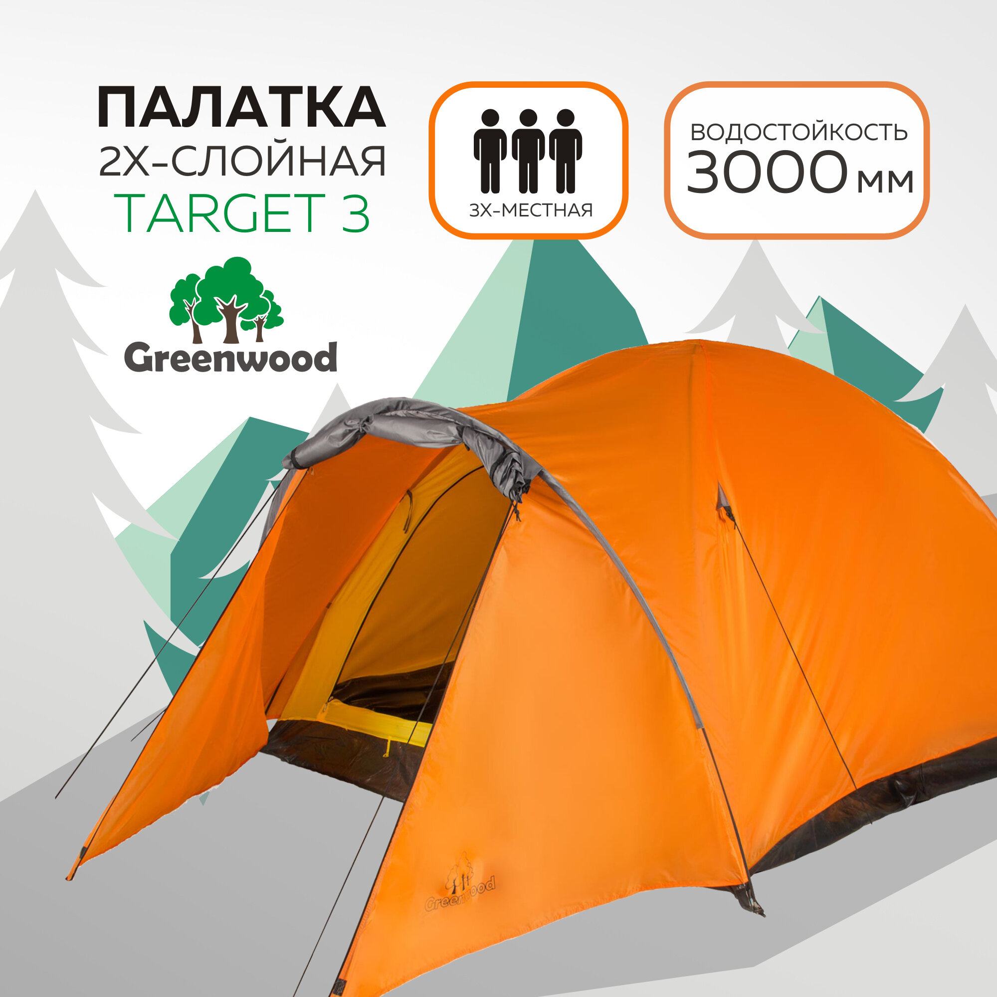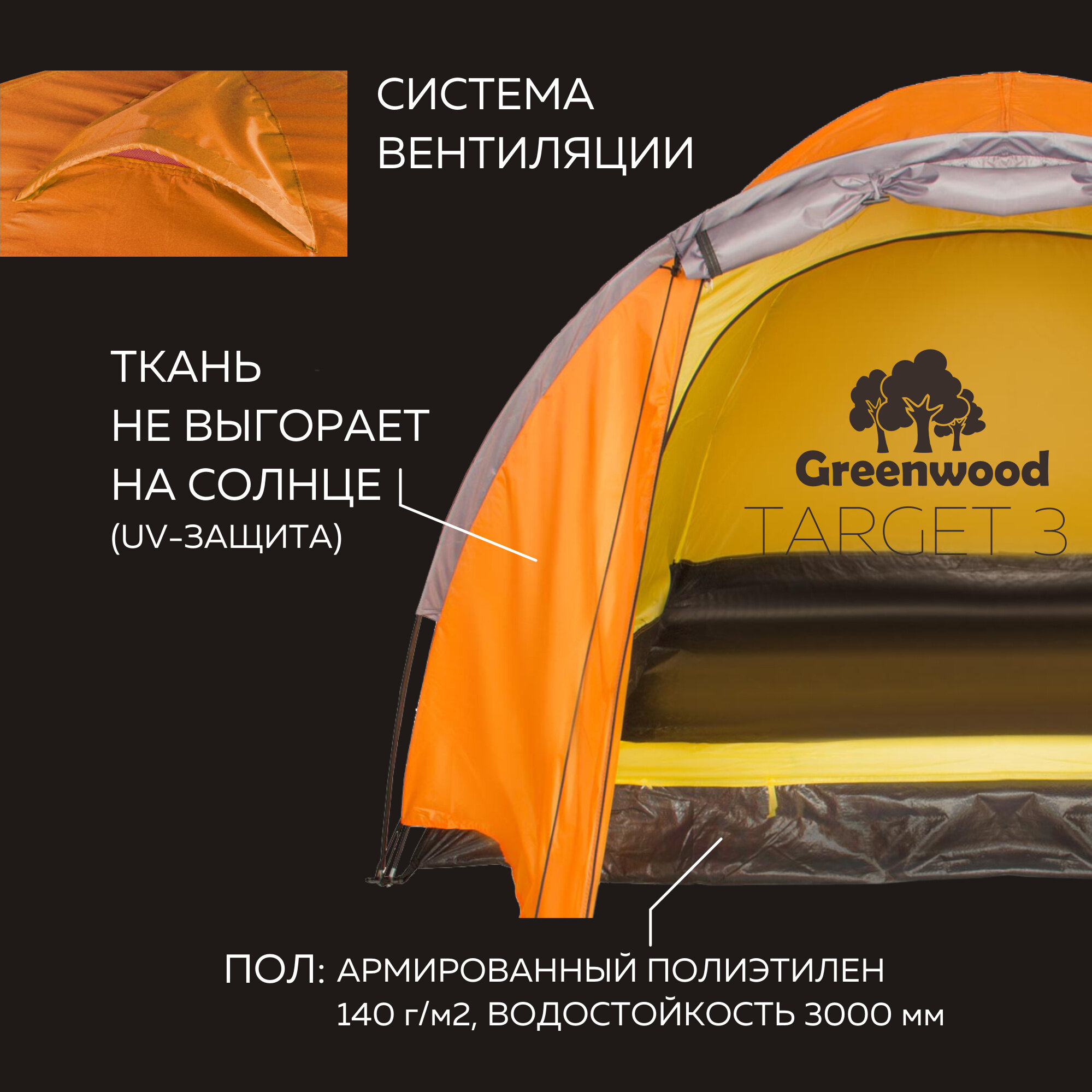 Палатка 3-х местная Greenwood Target 3 оранжевый/серый (118) интересное:
