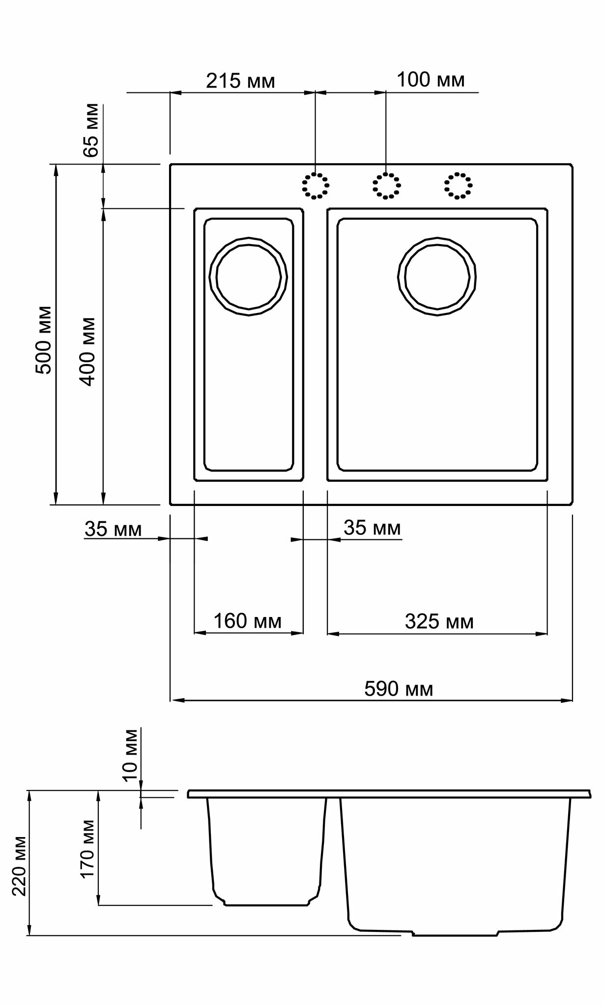 | Ширина мойки | 59 см |