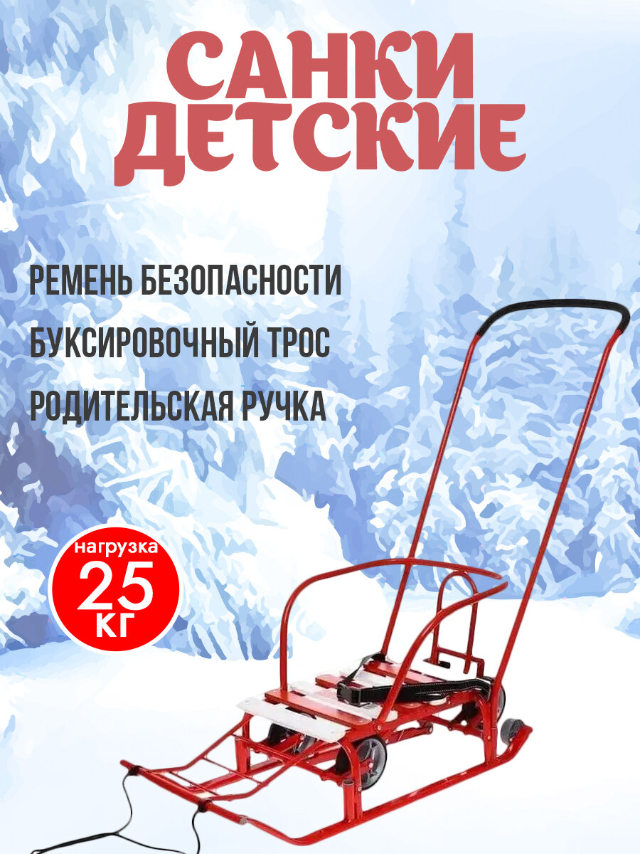 Санки Тимка 5 Универсал Т5У/К2 красный /Ника/ спинка, толкатель, колеса