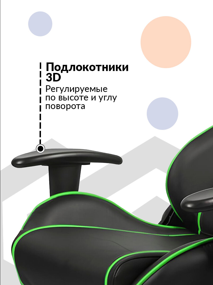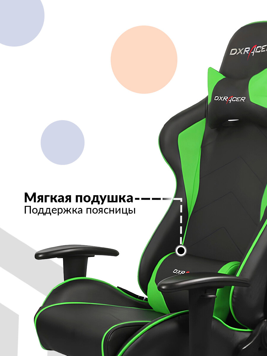 Компьютерное кресло DXRacer OH/FE08/NE черный/зеленый / Эргономичное компьютерное кресло в спортивном дизайне.