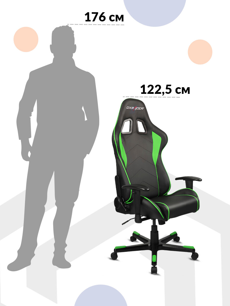 Кресло DxRacer OH/FE08 Formula, чёрно-зелёное, экокожа, регулируемый угол наклона