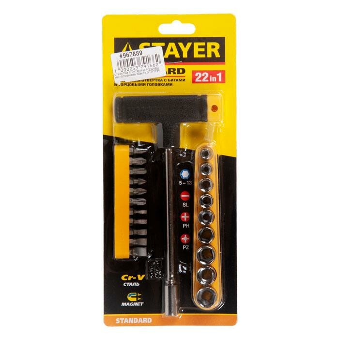 Набор отверток с битами, 21 предмет, Stayer, с Т-образной ручкой, 2540-H20
