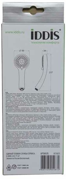 Лейка душевая IDDIS А11631 3 функции, материал ABS-пластик, d-99мм, хром